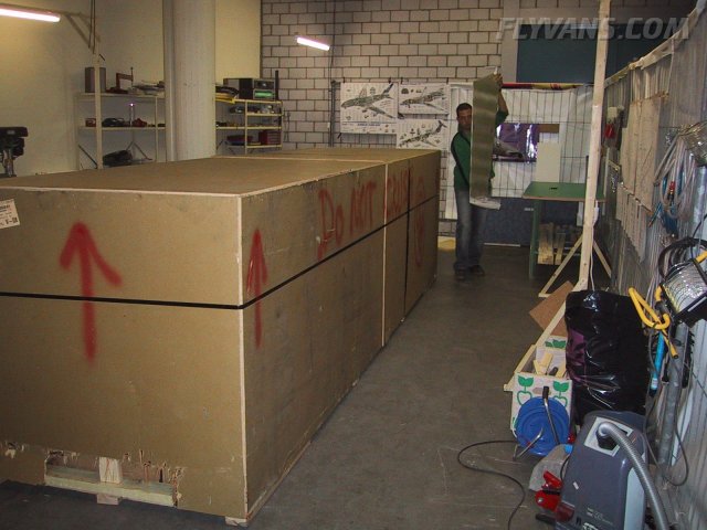 Today, we expected the arrival of the QB Wings and Fuse and also a lot of accessories packed into them via Van's. We had previously cleaned the shop and made space for the fuse. Of course we also arranged for a day off of work ahead of time. The trucker got here way early, it was around 0830 this morning when he called us up yet at home... So we had to rush to our workshop which is about 10min from our living place. Fortunately our workshop is in an industrial complex, so a truck terminal is available. Otherwise this could have been a major PITA... Also we were just us 2 and the trucker to offload the 2 large crates.