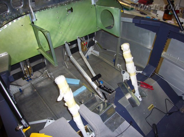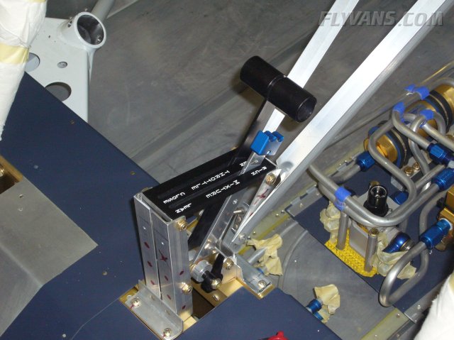 After a long time, continued on the center console. This time for good, as the control cables are among the first things to install with the engine. Originally we had planned to go with a FADEC engine where no mixture would have been required. That's why we converted a dual lever quadrant to Throttle and Prop only. Now that we need a mixture, decided to keep it that way as it makes for a slim console and the mixture can be better fine-tuned with vernier in the subpanel anyway. Got the touchpads in the mail. Looking good and slim, perfect fit for such a use. Closeup. Experimented some with the carrier beams. The idea is to have the whole center console/subpanel independent of the main panel, so that the main panel can be moved/removed separately. Also floor covers modified so they can be opened without having to remove the center console. The ideal slant was achieved by bending the main angles. The idea is to have an armrest between the flap channel and the throttle quadrant. The throttle quadrant is mounted rigidly to the main spar bridge using already existing holes. Next is the Fuel Selector, whose position is tightly determined by the valve on the fuel pumpe package and the corresponding extension. Further functions that have to somehow fit into the center console: parking brake, mixture, oil cooler shutter, touchpad. Wheter to do the center console with composites/fiberglass or aluminum wasn't decided for a long time. Glad I went with aluminum. Starting to take shape. Operating the touchpad while resting the hand on the fuel selector valve is pretty ergonomical considering the close quarters. With the panel in place, good visibility from the pilot seat, even though its forward and below of the instrument panel. Then I tried all kinds of mounting positions for the various push-pull cables. Here's how it ended up. The armrest will be made out of a channel of aluminum that came with the QB fuse, stabilizing it for transport. Looking a bit complicated with all the clecoes and yet without final trim. One bracket on each side of the center console. Left bottom = parking brake. Left top = oil cooler shutter, seldom use expected. Right = mixture control. Received various parts i ordered for our custom map-pc build. Notably an awesome 6.5" LCD display with driver boards from www.displaylc.com Also, a 4GB solid state disk and another 4GB flash card. Harddrives wouldn't work in that harsh environment. And just received a few pictures from Larry Vetterman, the RV exhaust guru who is building a custom exhaust for us. It's based on a 4into4, the only setup working with the ECI cold air induction as we found out, and a 4into1 collector, behind which we will mount a Liese muffler.