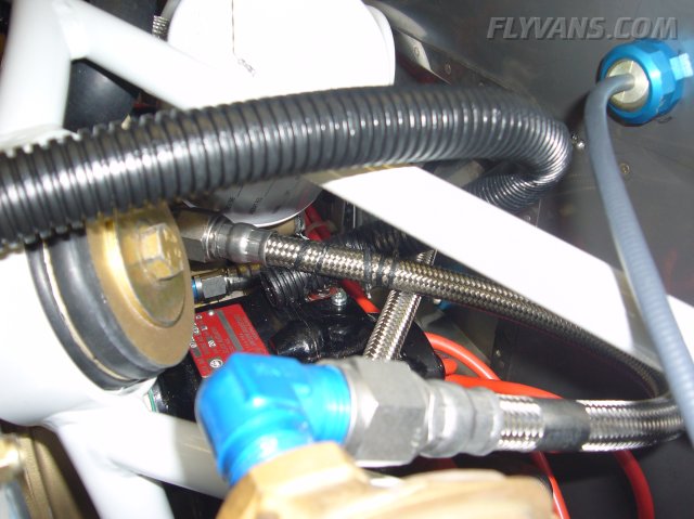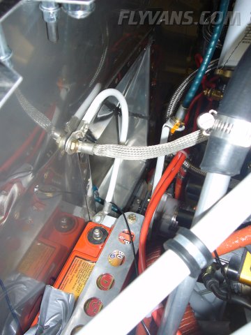 A "proper" grommet would have weakened the baffling at this critical location because of the required oversize hole. So we protected the prop line with this heavy duty caterpillar strip, plus it will be sealed with high temp silicone as well.